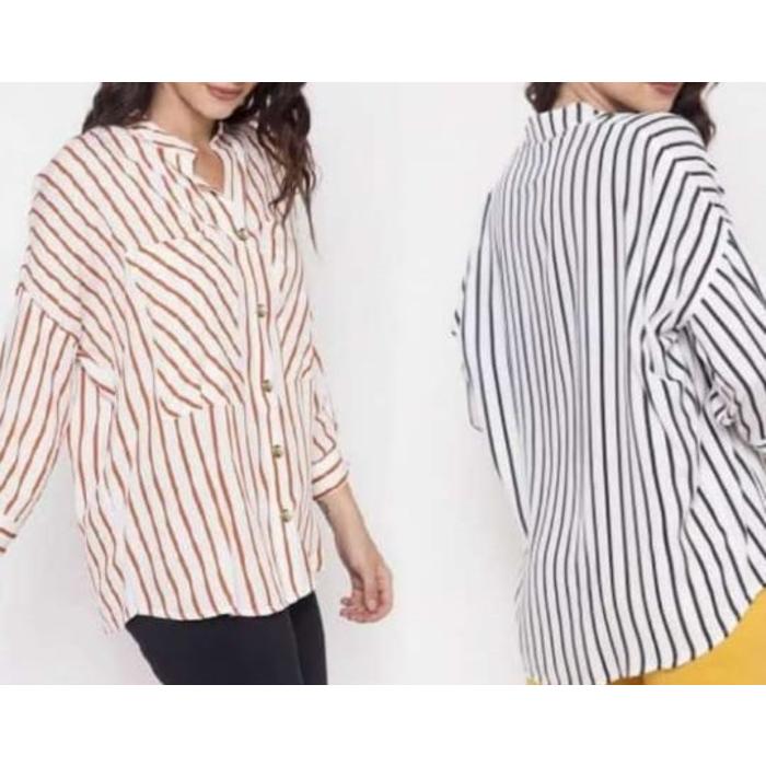 Camisa de Fibrana Rayada, mangas 3/4